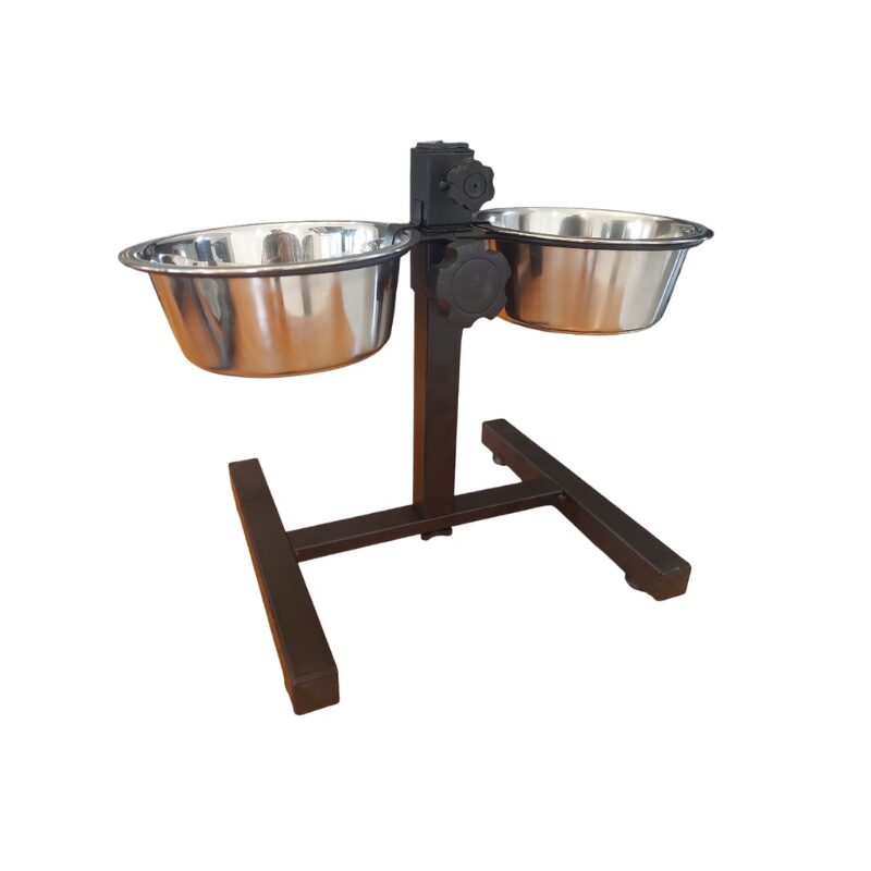 Soporte ergonómico con doble comedero. Diseñado para ofrecer máxima estabilidad, cuenta con un sistema de sujeción para los cuencos y tecnología antivibración que garantiza una alimentación silenciosa. Los comederos de acero inoxidable son extraíbles y aptos para lavavajillas, facilitando la higiene diaria. La base es regulable en los pies para adaptarse a diferentes superficies.