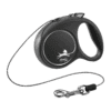 Correa Flexi New Classic con cinta retráctil diseñada para perros de hasta 50 kg. Cuenta con un sistema cómodo de frenado y un gancho cromado para sujetarla al collar o arnés del perro. Ideal para paseos controlados y cómodos. Disponible en talla S (3m 8kg), S (5m 12kg) y M (5m 20kg)