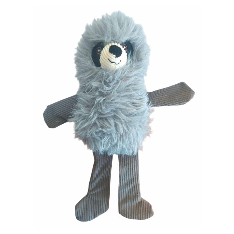 Peluche Mapache de 38 cm con una mezcla de texturas para mayor diversión. Su cuerpo mullido y extremidades de tela estriada son ideales para masajear las encías y asegurar un agarre firme. Equipado con chifle y material crujiente, es el juguete perfecto para despertar la curiosidad y el instinto de juego.