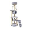 Material Suave: Toda la estructura, incluidas las cuevas y plataformas, está cubierta con una suave y cálida felpa de color gris, que invita al descanso.