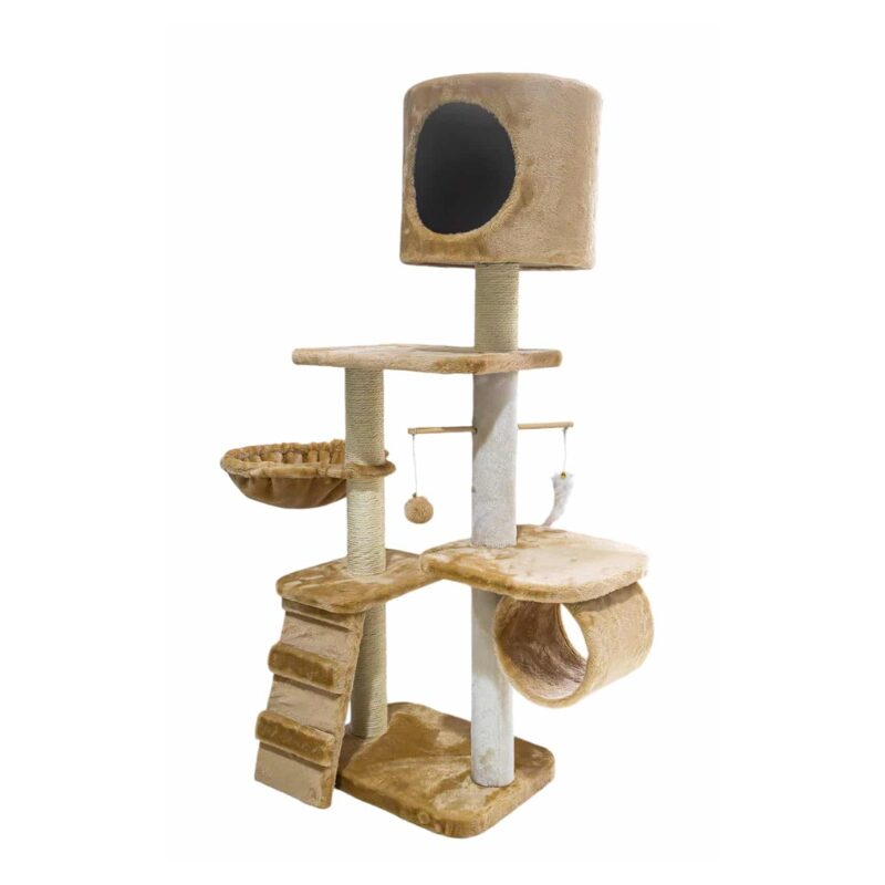 Este gimnasio multinivel, con una altura de 117cm, está diseñado para satisfacer todos los instintos de tu felino, promoviendo el ejercicio y la relajación.