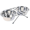Comedero de acero inoxidable con base de goma antideslizante, fácil de limpiar e higiénico. Capacidad: 1000 mL. Dimensiones: 29 cm de diámetro, 29 cm x 21 cm x 6.5 cm.